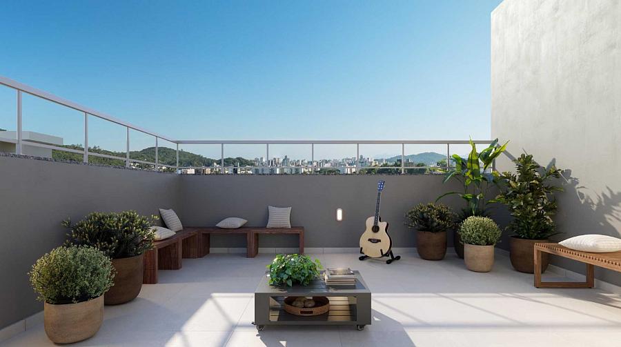 Desfrute de uma área externa privativa neste Giardino exclusivo, combinando o conforto de um apartamento com a liberdade de uma casa no bairro Iririú.