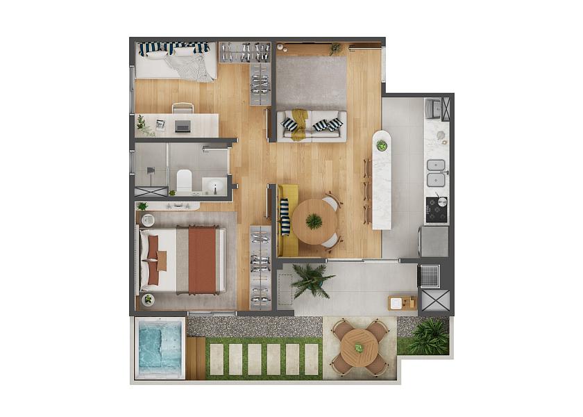 O Itajuba Casamar também conta com outras unidades disponíveis de 48,90m² a 78,70m², com opções de 2 dormitórios.