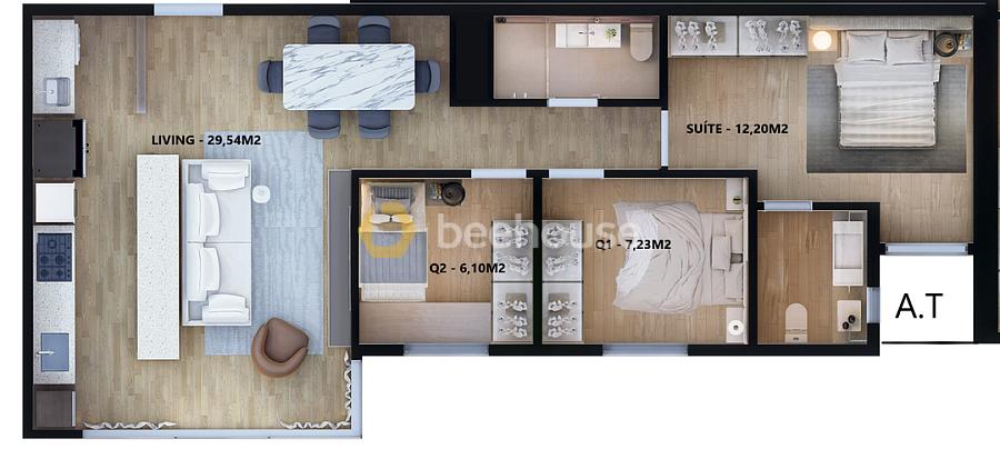 Apartamento Giardino de 143,81m² com 3 Quartos no Maison Schwartz – Anita Garibaldi