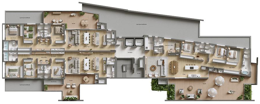 - Acabamentos de alto padrão e automação residencial completa