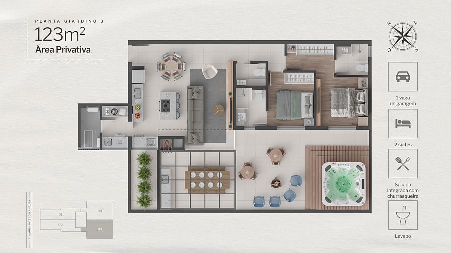 Apartamento Giardino de 123m² com 2 Suítes no Rosskamp Residence – Anita Garibaldi, Joinville