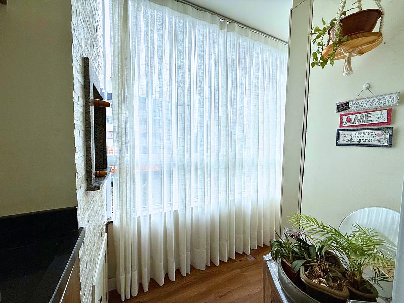 A sacada com churrasqueira possui fechamento em reiki, ampliando o uso do ambiente. Móveis sob medida de excelente padrão em todos os cômodos.