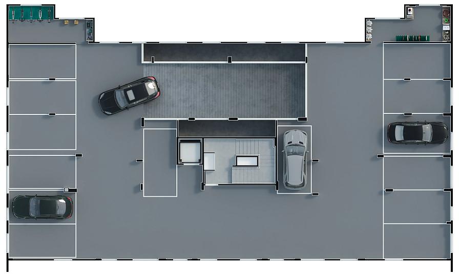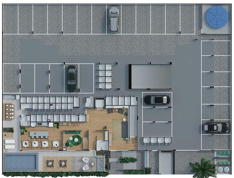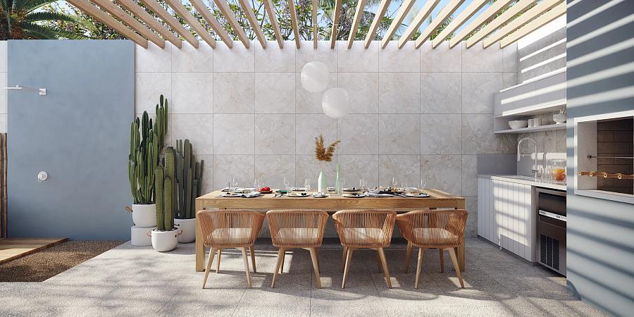 - Piso porcelanato 70x70 e esquadrias em alumínio preto
