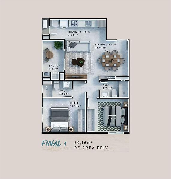 Apartamento de 60,16m² com 2 Quartos no Blake 120, Itaguaçu Beach, São Francisco do Sul