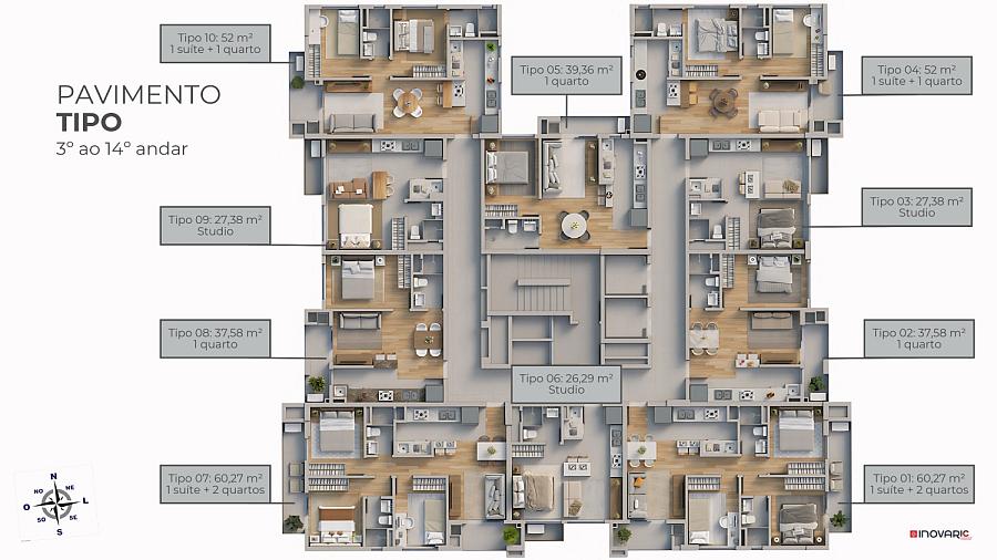 O Celebra também conta com outras unidades disponíveis de 27,38m² a 60,27m², com opções de Studio, 1 e 3 dormitórios.
