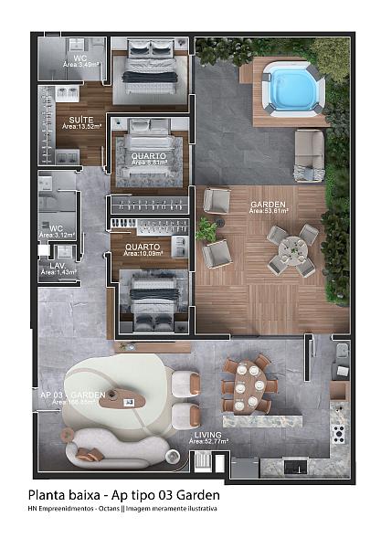 ESPETACULAR GIARDINO COM AMPLO TERRAÇO NO EDIFÍCIO OCTANS - 166m²