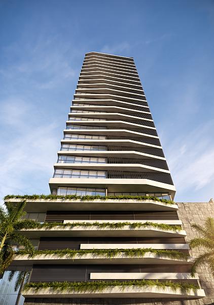 • Unidades: Apartamentos de 136 m² a 160 m² (3 ou 4 suítes) e coberturas planas de 211 m² a 228 m².