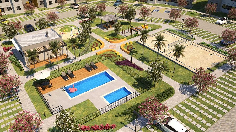 • Metragens privativas das unidades que estão à venda: 42,99 m², 43,23 m², 48,31 m², 54,41 m² (Giardino) e 56,86 m² (Giardino)