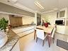 A área social é um convite ao bem-estar: sala de estar ampla, muito bem ventilada e iluminada, integrada a uma cozinha espaçosa, equipada com móveis sob medida e eletrodomésticos.