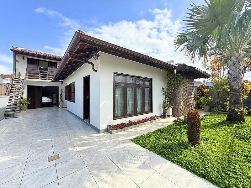 O terreno é plano, murado e muito bem aproveitado, com espaço lateral, lavanderia nos fundos e um lindo jardim que valoriza ainda mais o imóvel. Na garagem, você conta com 1 vaga coberta e espaço para até 3 ou 4 veículos.