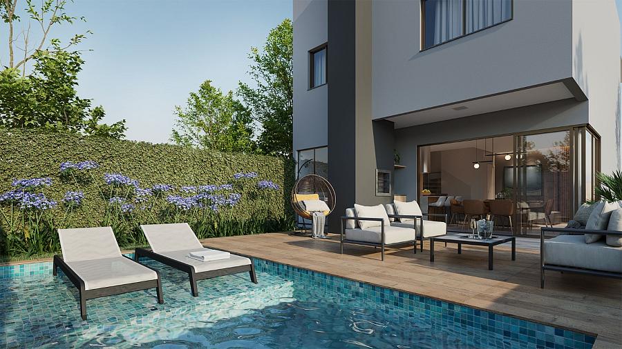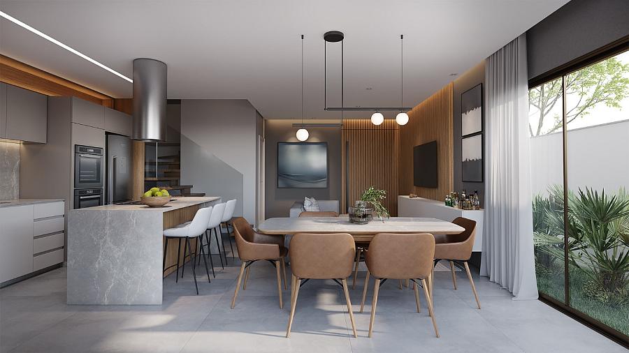 Além desta casa, o empreendimento possui opções de 135m² a 145m², com 3 a 4 dormitórios e 4 vagas de garagem.