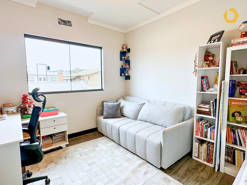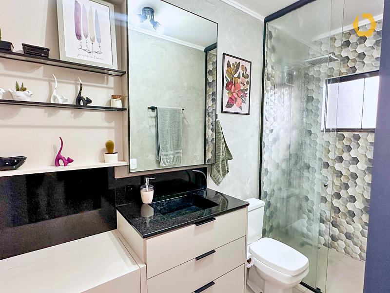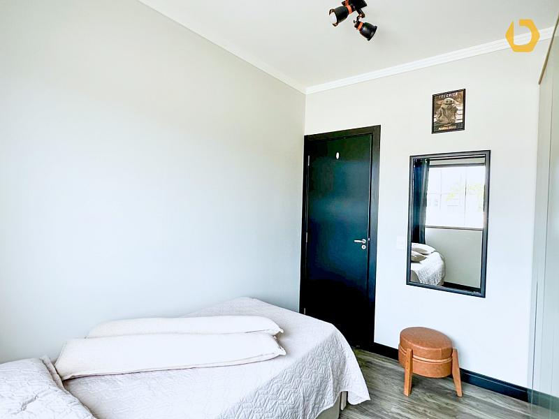 No piso superior, a área íntima entrega 1 suíte com sacada + 2 dormitórios e banheiro social, com planta inteligente e ótima distribuição dos ambientes.